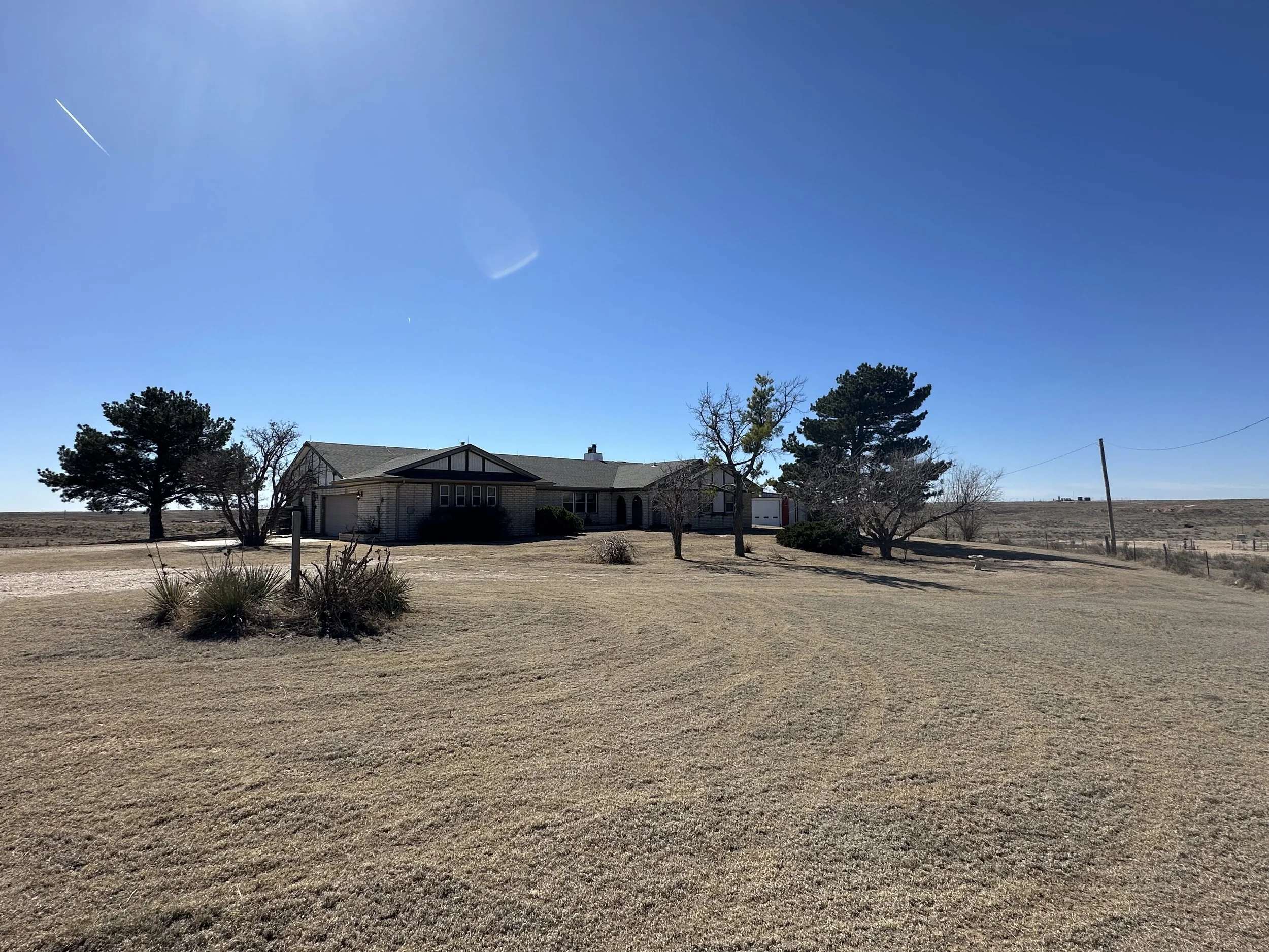 Country living, 3.5 miles from Guymon. Paved road to the house. Well-built three bedrooms, two living rooms with fireplace and a small storm shelter on four acres. New roof!